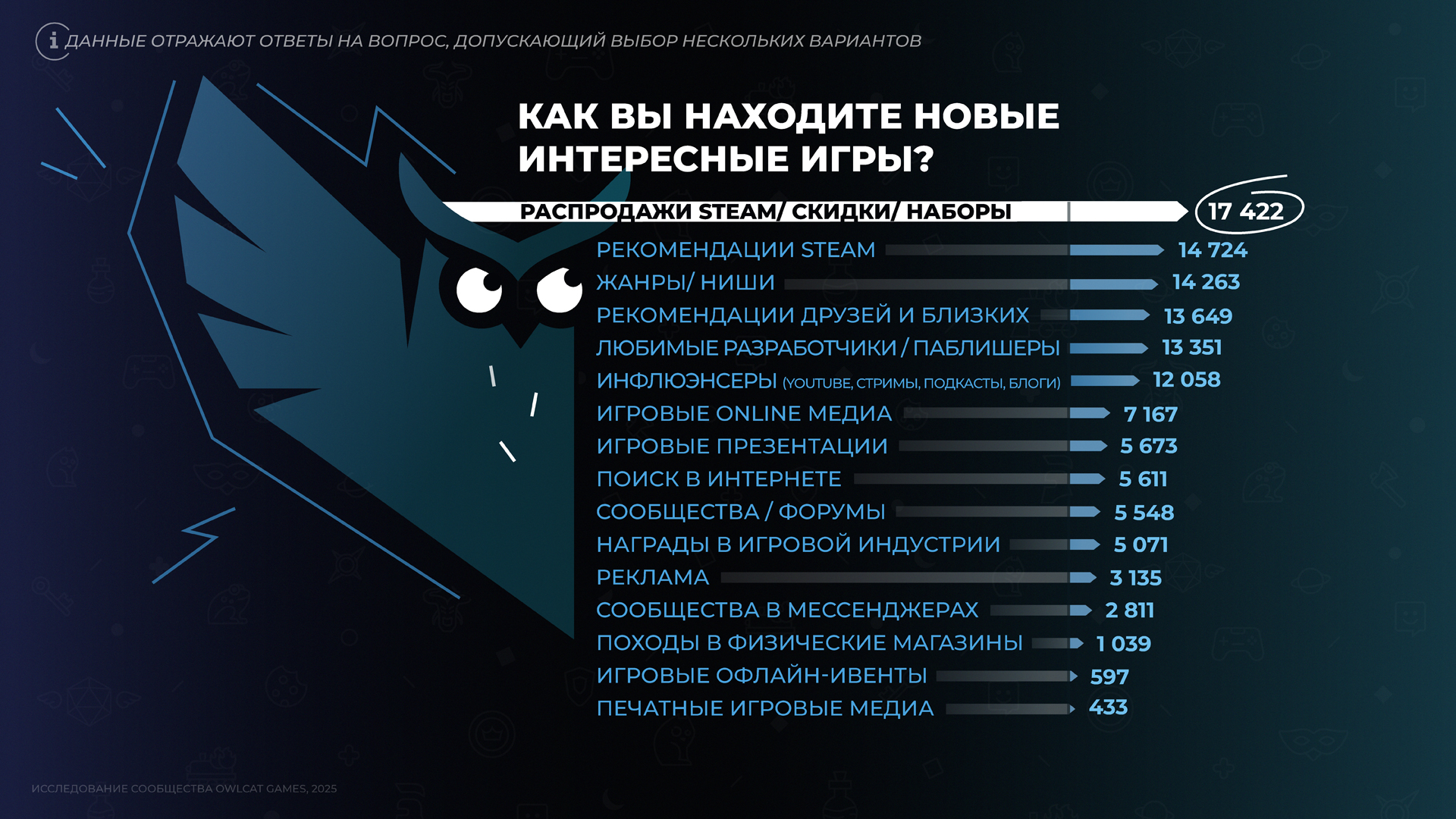 В опросе приняли участие респонденты с разным игровым опытом: от тех, кто только начал погружаться в индустрию, до тех, кто давно следит за ней. Самой многочисленной оказалась группа в возрасте 25-34 лет. Каждое поколение по-своему открывает для себя новые проекты, но принцип один: доверие. Можно бесконечно листать ленту и смотреть трейлеры, но ничто не заменит рекомендацию близкого человека.