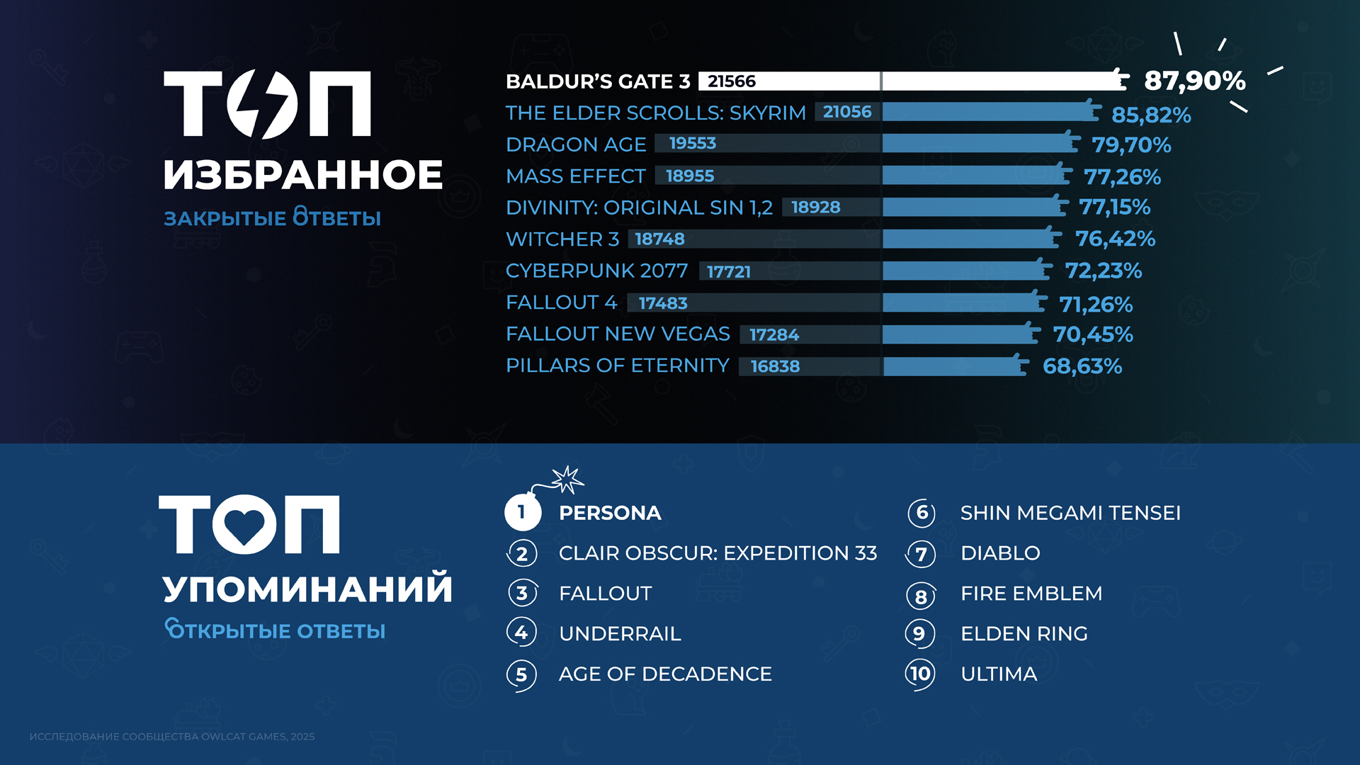 Мы также спросили вас о любимых RPG и рады поделиться подборкой по результатам опроса: